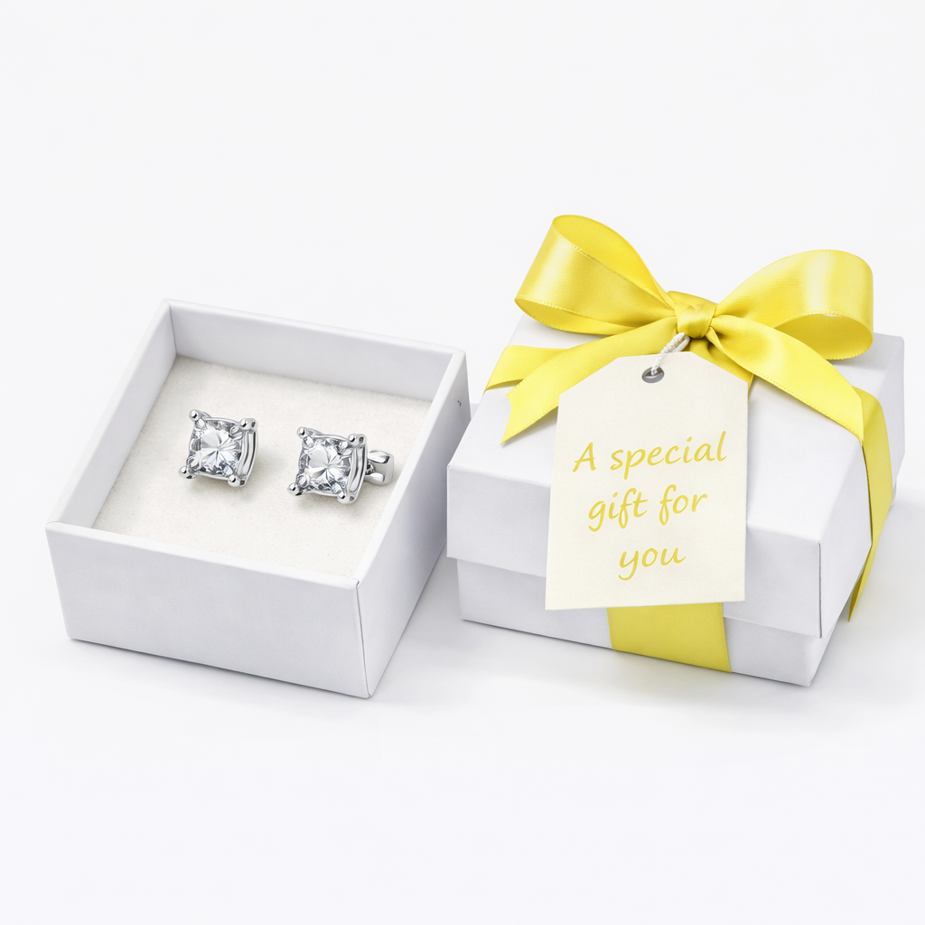 💎 Sterling Style, Square Sparkle – Just £4.99 💎 Elegant 925 sterling silver earrings featuring a sleek square setting with shimmering stones for timeless shine. Presented in a soft white gift box, finished with a satin ribbon and a heartfelt tag: “A special gift for you.” Perfect for birthdays, celebrations, or everyday elegance—luxury made thoughtful at only £4.99.