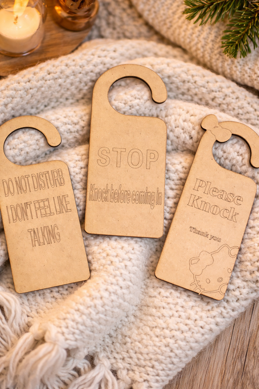DOOR HANGERS PACK OF 3 MDF READY TO PAINT OR USE AS THEY ARE £2 A PACK