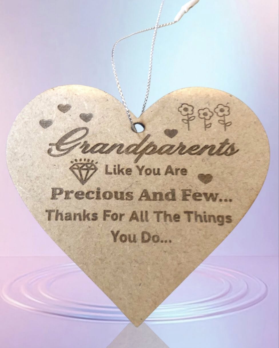 ❤️ Grandparents Keepsake Heart – Just 50p! Beautiful 9cm MDF wall hanger with engraved quote: "Grandparents Like You Are Precious And Few... Thanks For All The Things You Do..." A heartfelt little gift to show your love. Perfect for craft fayres, stocking fillers, or thank-you tokens! 🎁