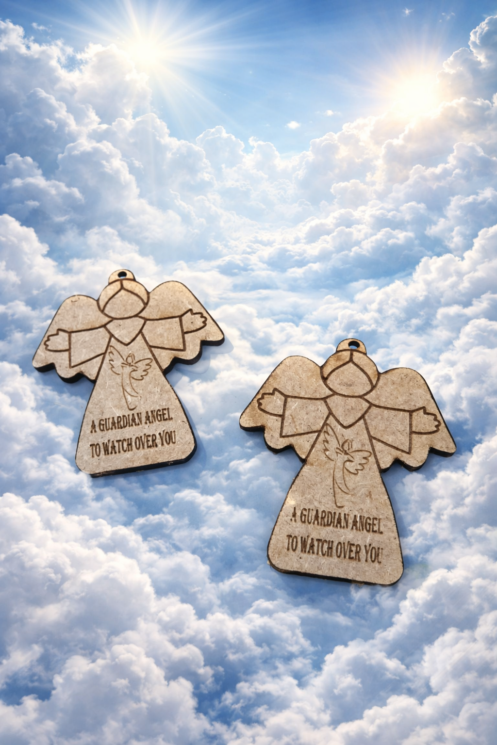 This pack of 2 engraved wooden guardian angels is perfect for adding to keyring blanks, gift bags, or keepsake boxes. Each angel carries the message: “A Guardian Angel to Watch Over You” – a comforting touch for family, friends, or anyone who needs a little love.