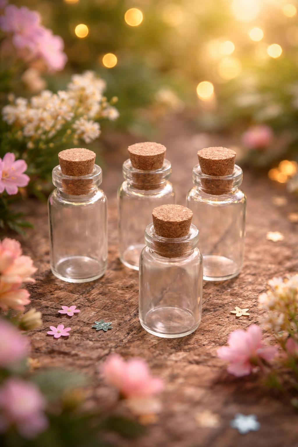 Capture a moment, a dream, or a whisper of hope with these enchanting Mini Wish Jars. Each glass bottle comes topped with a natural cork lid, ready to hold your secrets, sparkles, spells, or tiny treasures.