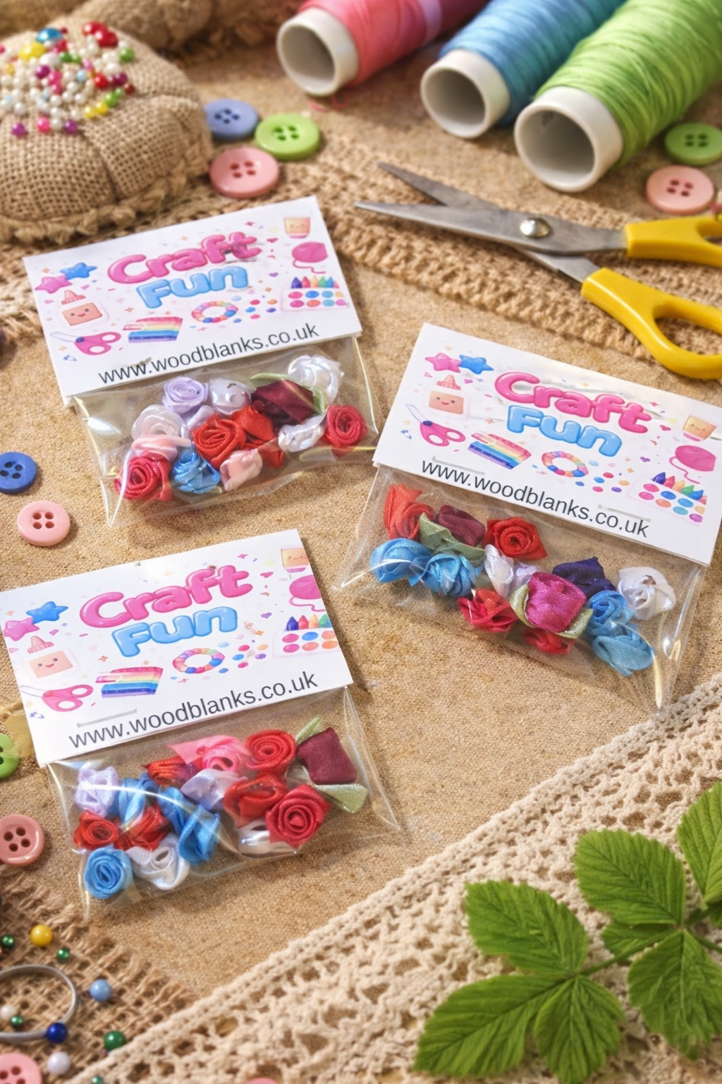 Unleash your inner maker with our Satin Ribbon Roses — a riot of colour in every pack! Whether you're jazzing up a doll’s hat, pimping a gift tag, or just hoarding tiny florals like a magpie with taste… these beauties are just 50p a pack.